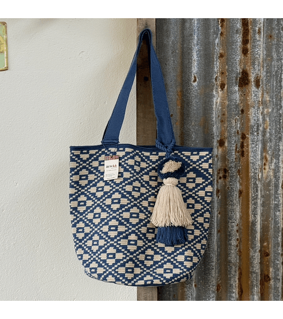 Esta mochila tipo playera está hecha totalmente a mano por mujeres wayuu, tardó aproximadamente 4 días en tejerse y es única en su tipo, su autenticidad se puede comprobar a simple vista por su calidad, colores, textura y tejidos.