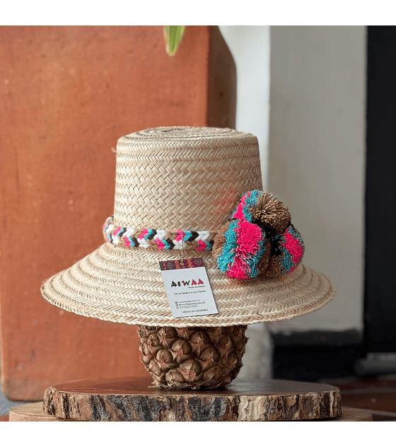 El sombrero  está hecha totalmente a mano por hombres wayuu, elaborado con hilos planos y cintilla de paja de issi o mawisa, fibra propia de la Serranía de la Makuira, en La Guajira.