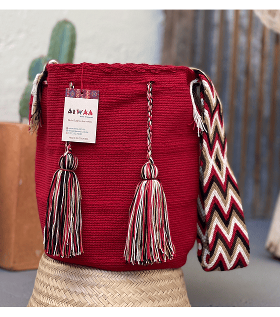 Esta mochila está hecha totalmente a mano por mujeres wayuu, tardó aproximadamente 3 días en tejerse y es única en su tipo, su autenticidad se puede comprobar a simple vista por su calidad, colores, textura y tejidos.